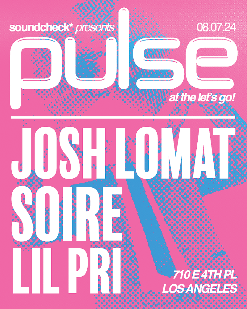 Soundcheck Presents: Pulse Wednesday, August 7, 2024 9:00 PM 11:55 PM The Let's Go! Disco & Cocktail Club 710 East 4th Place Los Angeles, CA, 90013 United States (map) Google Calendar ICS